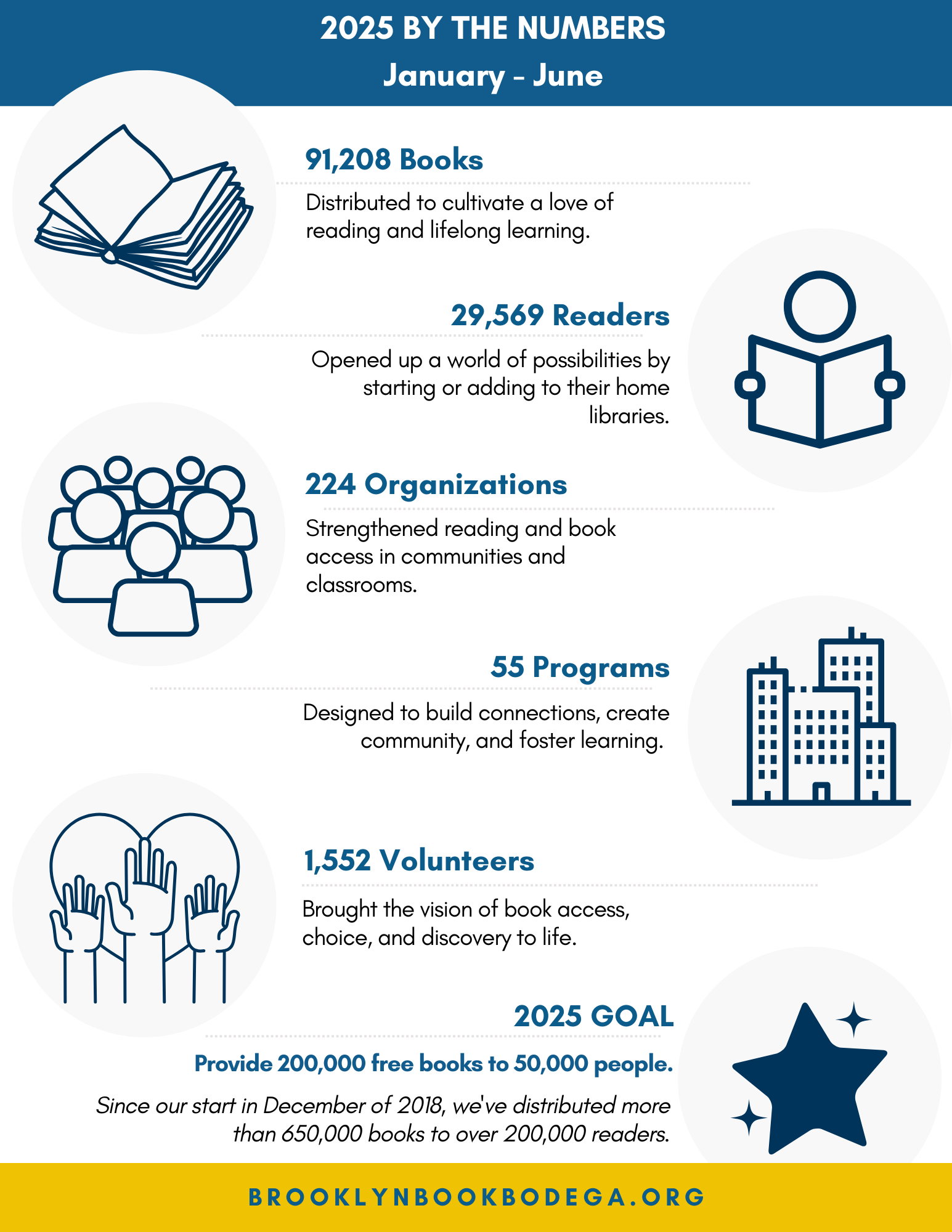 We can increase the number of 100+ book homes in NYC for kids 0-18 by working together. Over 8,000 volunteers have helped us distribute more than 600,000 books to 200,000 New Yorkers. Join us.